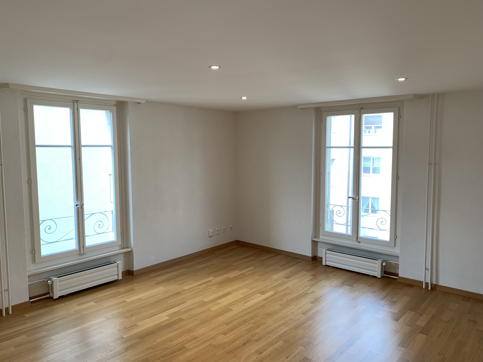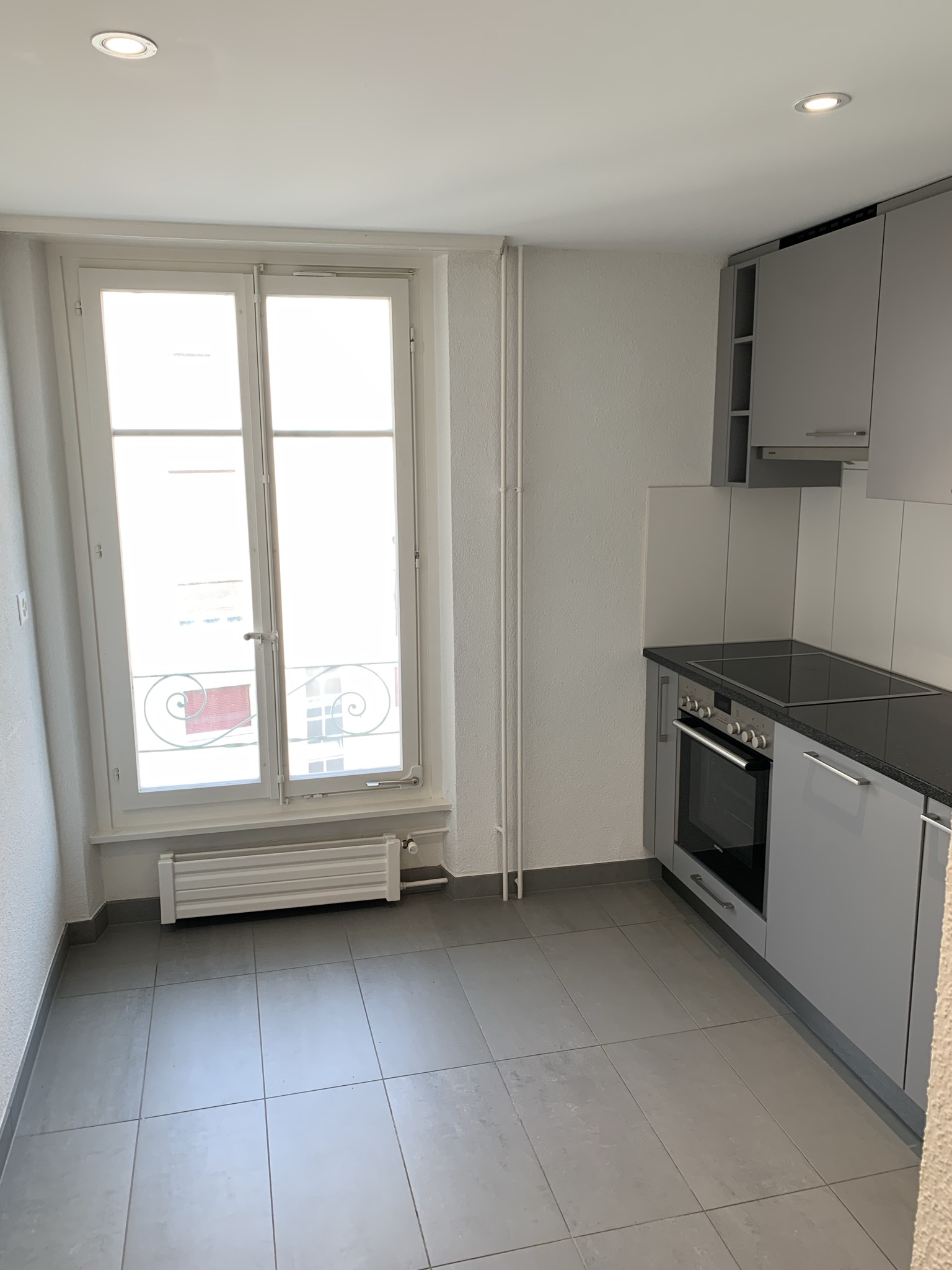 L’appartement de 2 ½ pièces se compose d’une salle bain avec baignoire ou douche, wc et lavabo, d’une cuisine habitable et de deux chambres pour un total de plus de 45 m2. Tous les étages sont accessibles en ascenseur. En outre, l’appartement dispose d’une cave et d’un local à vélos. La buanderie est mise gracieusement à disposition.